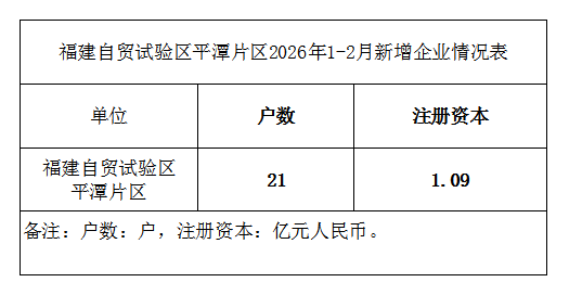 福建自贸试验区平潭片区2026年1-2月新增企业情况表