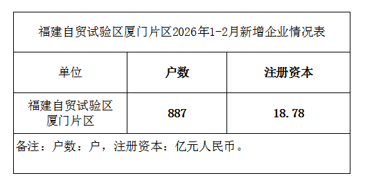 福建自贸试验区厦门片区2026年1-2月新增企业情况表
