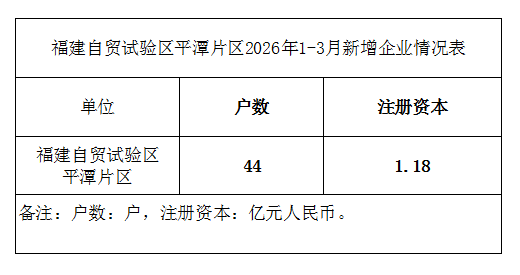福建自贸试验区平潭片区2026年1-3月新增企业情况表