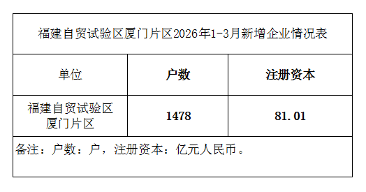 福建自贸试验区厦门片区2026年1-3月新增企业情况表