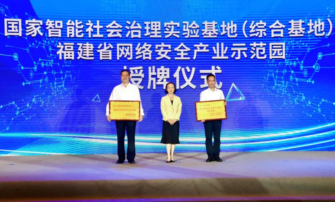 郭宁宁为“国家智能社会治理实验基地”和“福建省网络安全产业示范园”授牌