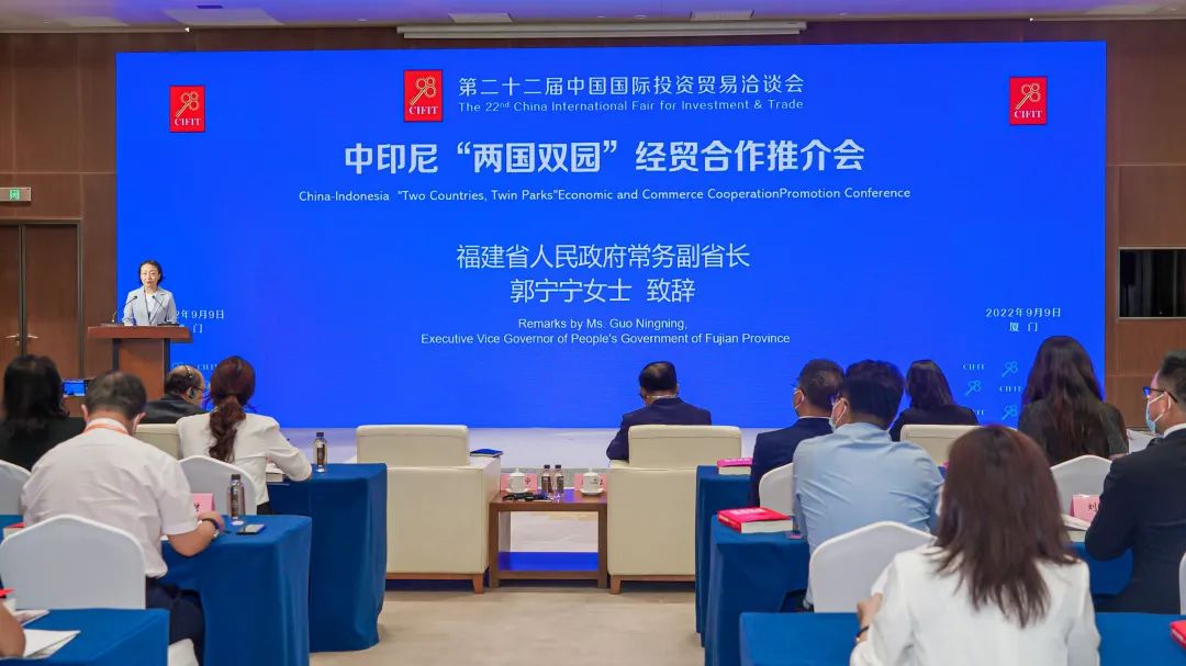 为进一步推动与印尼“两国双园”建设,共建经贸创新发展示范园区,近日,借助第二十二届投资贸易洽谈会平台,福建省商务厅联合商务部投资促进事务局、印尼驻广州总领馆、福州市人民政府成功举办了中印尼“两国双园”经贸合作推介会。会议以厦门国际会议中心为主会场,以线上线下相结合+直播的方式,连线北京、上海和印尼的雅加达、民丹省等多地成功举办,现场120多家企业踊跃参会,中国、印尼企业纷纷线上参会。