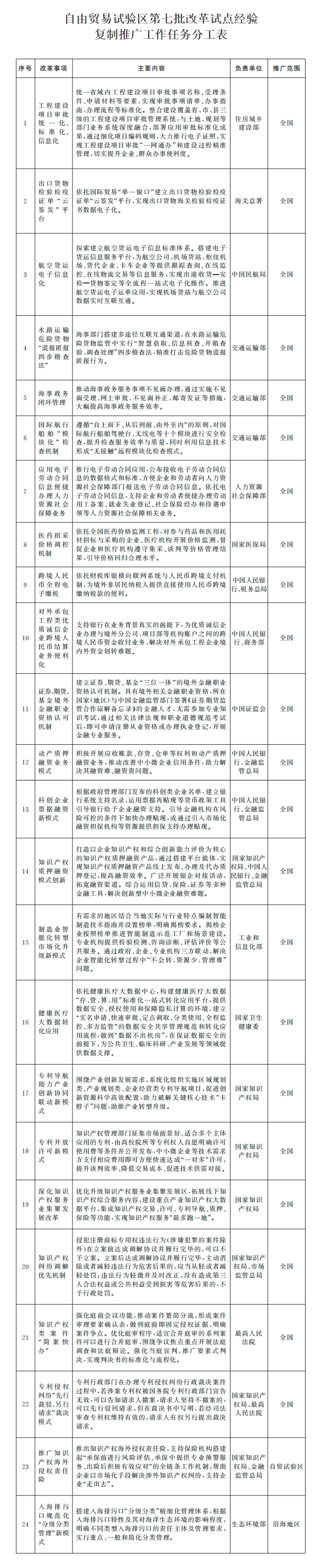 附件:自由贸易试验区第七批改革试点经验复制推广工作任务分工表
