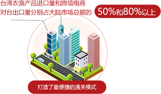 推进通关全流程创新,申报阶段允许“先报、预核、后补”、简化原产地证书提交需求;查验阶段采信台湾第三方检验检测结果、开展两岸“经认证的经营者互认”;放行阶段实行即查即放,覆盖了台湾工业品、食品、农产品、水果等主要商品,打造了最便捷的通关模式。台湾农渔产品进口量和跨境电商对台出口量分别占大陆市场总额的50%和80%以上。