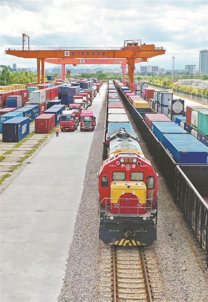 除了积极完善海铁联运基础设施、编制海铁联运高质量发展行动方案,厦门港还积极在前场打造海铁联运“东南陆海桥头堡”,力争建成综合铁路物流中心、集装箱多式联运中心、内外贸融合中心。
