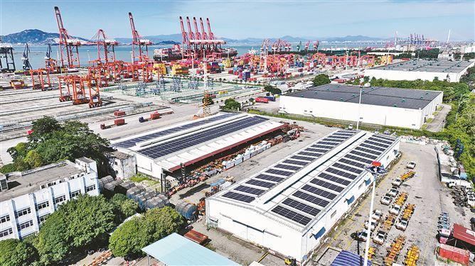 厦门港东渡港区楼顶的分布式光伏发电项目源源不断地将光能转化为电能。