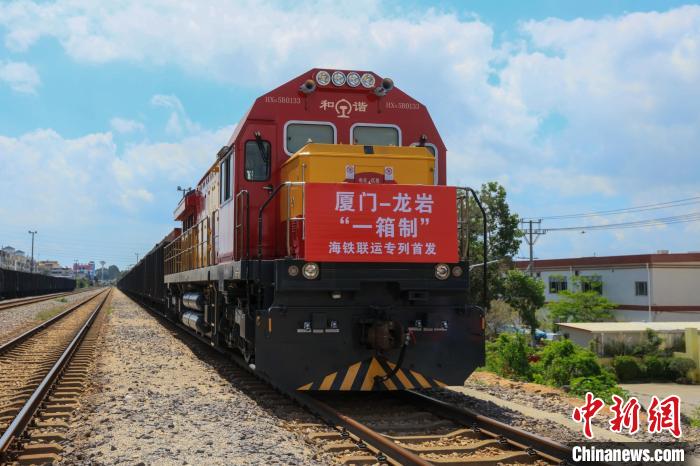 5月16日10时30分,一列装载78个标准集装箱,满载2145吨非洲进口铜精矿的“一箱制”海铁联运专列从厦门海沧站启程,直达龙岩蛟洋站。中国铁路南昌局集团供图