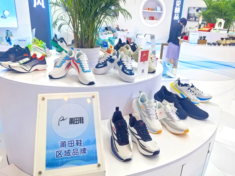 展馆入口处,安踏集团展示了2025年哈尔滨亚冬会领奖鞋服和最新款运动鞋,与华尔嘉公司首款智能人形机器人形成科技对话。“莆田鞋”展区则以创新设计诠释了“莆田制造”向“莆田创造”的转型。
