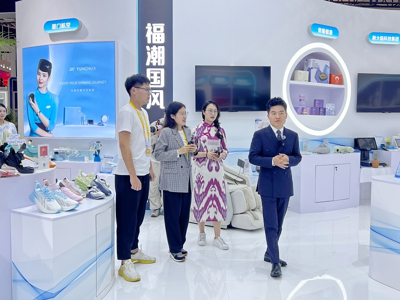 在第五届中国国际消费品博览会盛大开幕之际,以“福品卖全球 全球买闽货”为主题的福建省馆超燃出圈,展区面积304平方米,设立“福农优品”“福味飘香”“福茶生活”“福潮国风”“福见精品”五大主题展区,展示福建优质福品及智造工艺新高度。本次活动我中心协助福建省商务厅组织了安踏、九牧、片仔癀等龙头企业和莆田鞋、德化白瓷、南平建盏3大区域公用品牌等共计31家企业参展,打造“老字号焕新+新势力突围”的立体化展览模式。