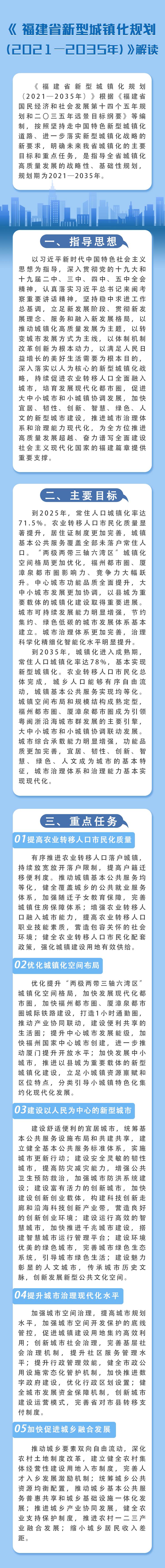 《福建省新型城镇化规划(2021—2035年)》根据《福建省国民经济和社会发展第十四个五年规划和二〇三五年远景目标纲要》等编制,按照坚持走中国特色新型城镇化道路、进一步落实新型城镇化战略的新要求,明确未来我省城镇化的主要目标和重点任务,是指导全省城镇化高质量发展的战略性、基础性规划,规划期为2021—2035年。