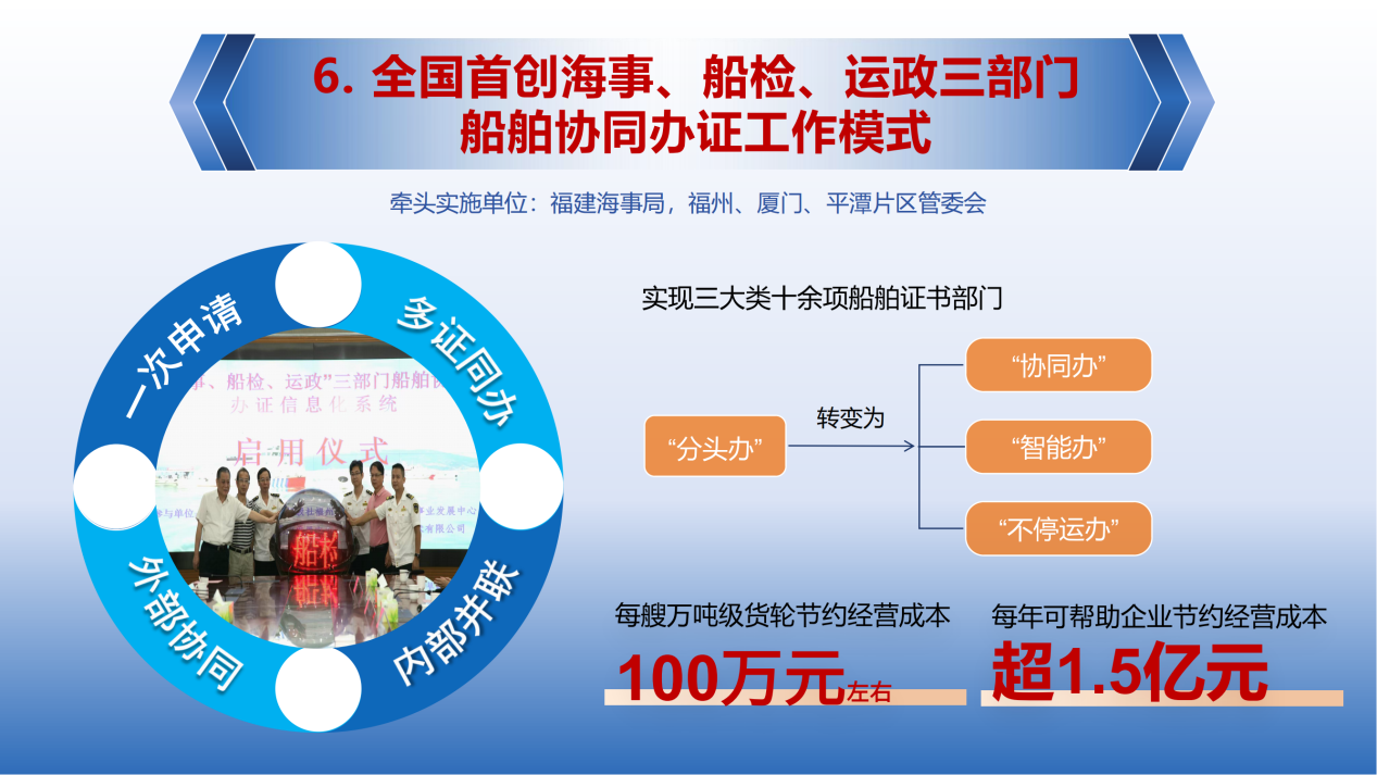 6.全国首创海事、船检、运政三部门船舶协同办证工作模式