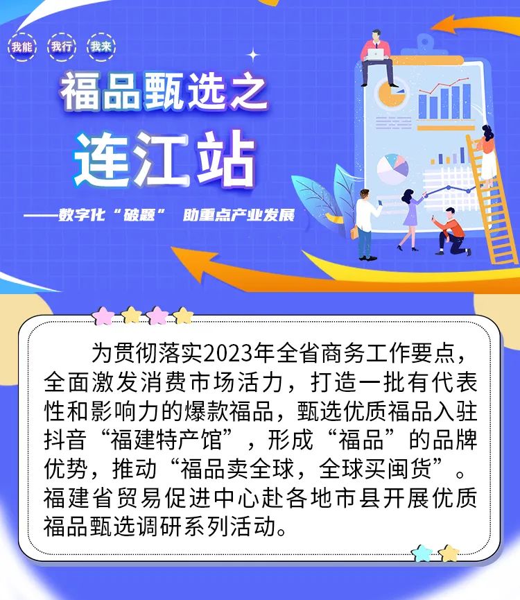 为贯彻落实2023年全省商务工作要点,全面激发消费市场活力,打造一批有代表性和影响力的爆款福品,甄选优质福品入驻抖音“福建特产馆”,形成“福品”的品牌优势,推动“福品卖全球,全球买闽货”。福建省贸易促进中心赴各地市县开展优质福品甄选调研系列活动。