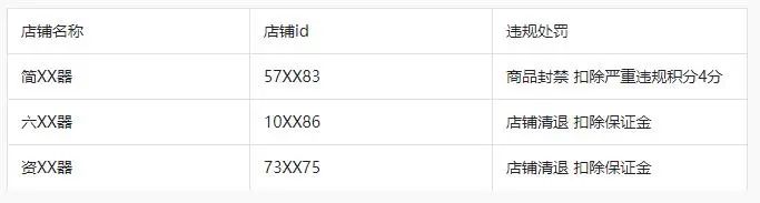 现对部分违规商家及创作者处罚情况公示如下: