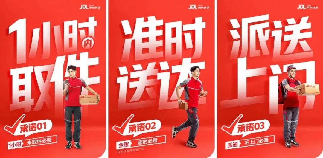 与此同时,京东快递还官宣升级了三大服务,提出 "1 小时未取件必赔 " 和 " 全程超时必赔 ",及 " 派送不上门必赔 " 三大服务承诺。