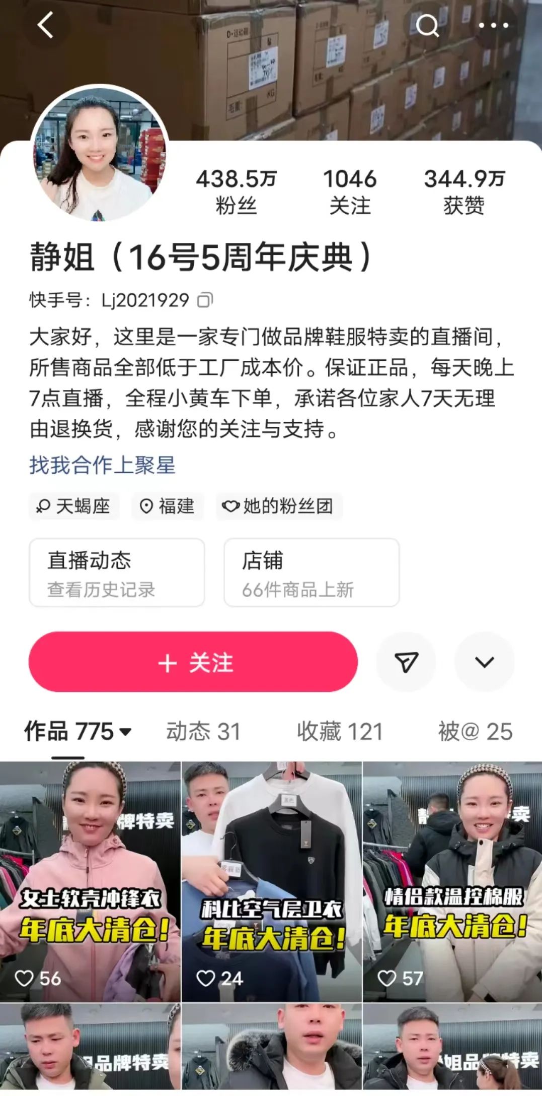 快手平台福建石狮男装标杆商家。商家深耕快手5年,通过大批量采销福建地区男装、男鞋、运动户外等优势类目入仓售卖,来持续保持商品的高性价比,同时分销女装、食品等品类不断拓宽货盘,保持货品多样性。快手平台粉丝复购率90%+,有极强的粉丝粘性。