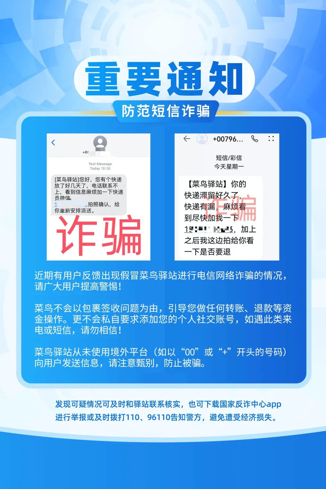 短信识别教育:针对冒充菜鸟驿站发送诈骗短信的情况,警方通过媒体和社交平台教育公众如何识别这类短信。例如,提醒公众注意短信是否来自官方号码,以及短信内容中是否包含特殊符号或链接等可疑元素。