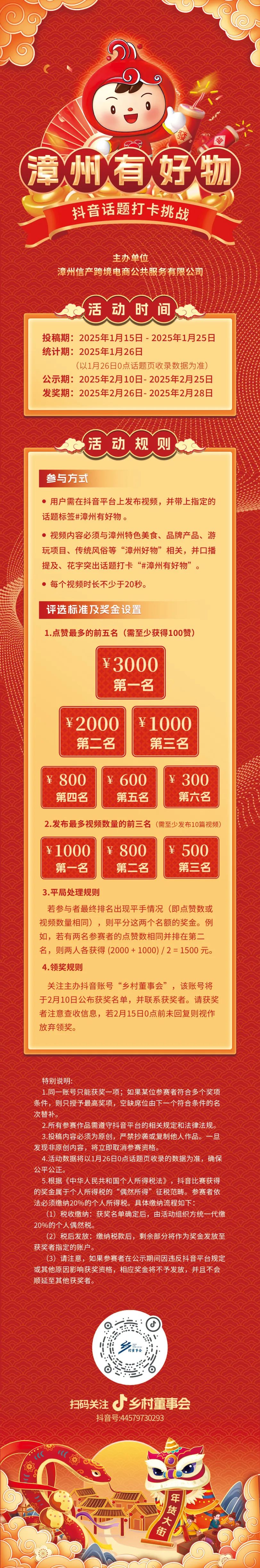 作为系列活动,“#漳州有好物”抖音话题打卡挑战、“漳州好物·全国行”年货排位赛也火热开启,通过现金激励的形式吸引广大商家和市民参与其中。