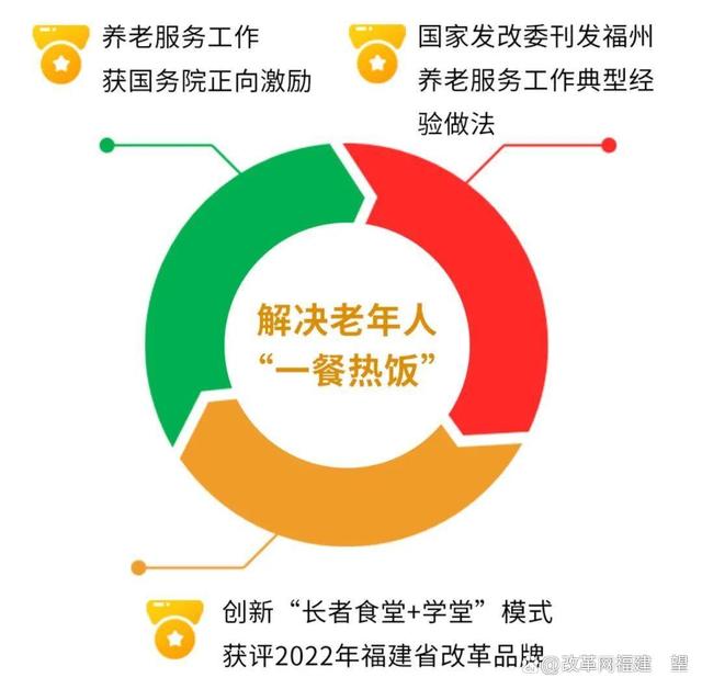 为实施积极应对人口老龄化国家战略,福州市加快建设老年友好型城市,扎实推进居家社区养老服务集成改革,全过程、全链条、全生命周期设计改革任务,聚焦解决老年人最现实、最迫切的“一餐热饭”问题,打造独具福州特色的“长者食堂+学堂”模式。“长者食堂+学堂”经验做法赢得各级政府、媒体点赞,多次被人民日报、新华社、央视等重要媒体平台宣传报道。