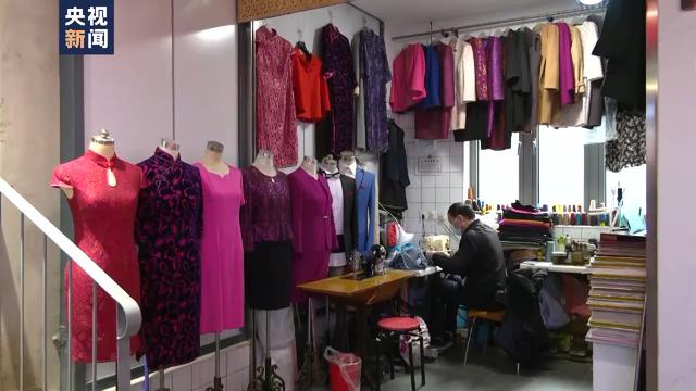 上午9时,上海长宁区一家菜场的角落里,传出阵阵缝纫机齿轮声和小锤的敲击声,整齐陈列的旗袍在菜市场中虽显得有些不同,但小店的生意还不错。