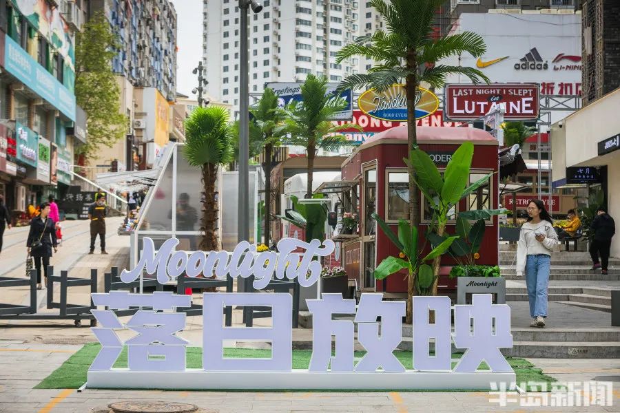 如今,全新的创想艺术段区域凸显着既时尚又怀旧的感觉。经过场景优化与运营创新,这里新增了露天电影院、轻餐饮车、茶饮造型景观杯等设施,同时街区装饰上了颇具“复古”情调的特色招牌,整体氛围变得更加动感时尚。