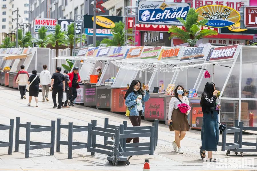 台东三路步行街创想艺术段里,经过全新设计打造的一条活力街区吸引着市民和游客前来体验。