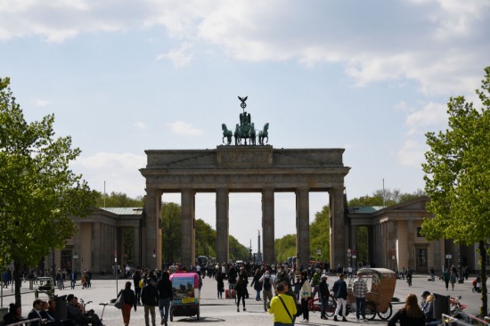 4月28日,游客在德国柏林勃兰登堡门东面的巴黎广场上游览。(新华社记者任鹏飞摄)
