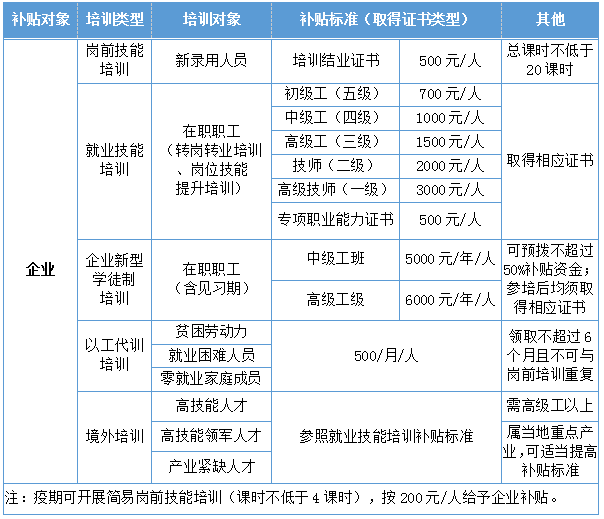 《福建省职业技能提升行动实施方案(2019-2021年)》提出“大规模开展职业技能培训,加快建设知识性、技能型、创新型劳动者大军”。经2020年最新政策梳理和调整完善,现按照我省职业技能提升行动补贴对象三类群体“企业”“劳动者”“培训院校”图解细化,针对培训对象、补贴标准及有关要求等内容“敲黑板,划重点”,为您提炼“干货”!