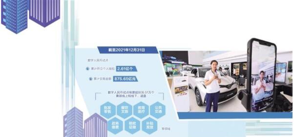 自2019年以来,数字人民币试点已在北京、天津、河北、福建等省份多个地区落地实施。央行数据显示,截至2021年年底,数字人民币试点场景已超过808.51万个,累计开立个人钱包2.61亿个,交易金额875.65亿元。