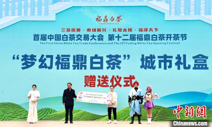 图为“梦幻福鼎白茶”城市礼盒赠送仪式。 吴允杰 摄