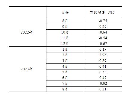 根据季节调整模型自动修正的结果,对2022年8月份以来的社会消费品零售总额环比增速进行修订。修订结果及2023年8月份环比数据如下: