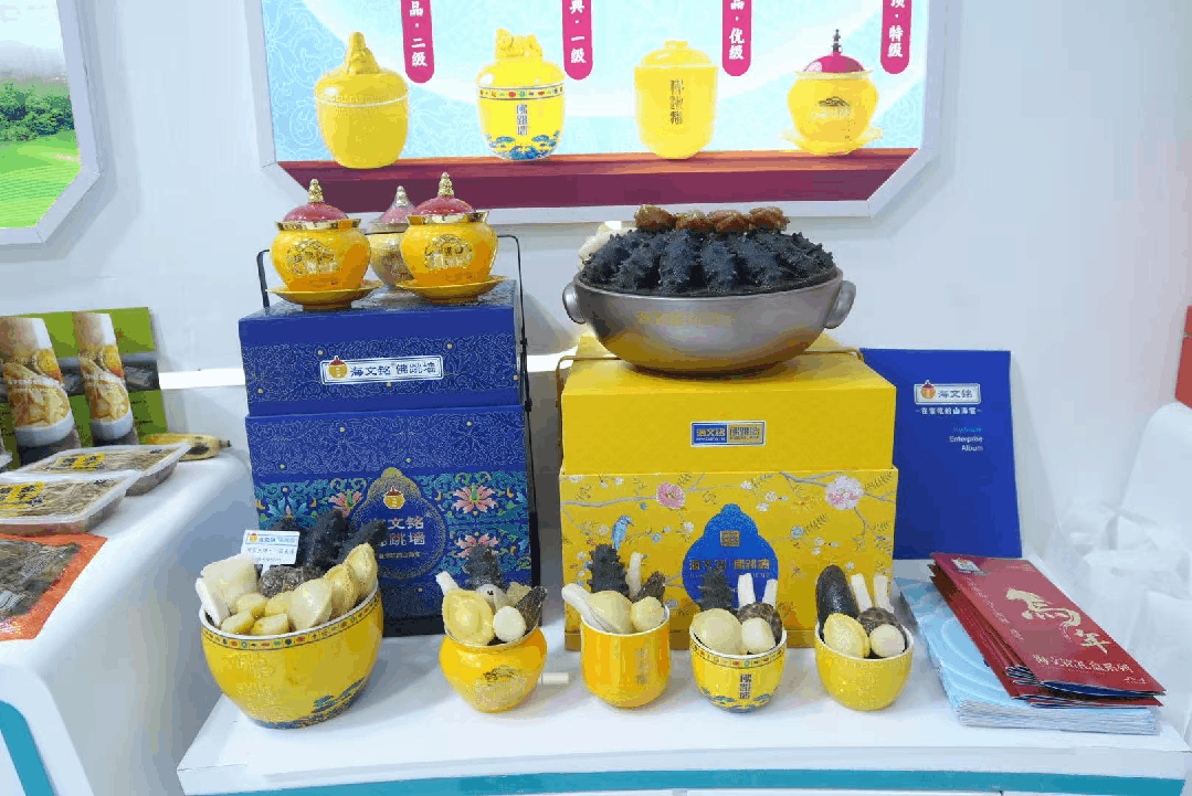 当然,绿色消费展区里的看点可不止于此,闽地的山中珍品与海陆鲜味邀你开启一段难忘的舌尖之旅。海文铭的新派佛跳墙礼盒在保留传统佛跳墙浓郁口感的基础上改良升级,一鼎在手,足不出户便可复刻国宴名肴;鸿航水产主推的国家地理标志产品罗源鲍鱼,严格执行“捕捞40分钟内即进厂加工”的生产标准,采用液氮速冻技术确保鲍鱼肉质紧实、胶质浓郁;来自“竹笋之乡”三明永安的毛氏食品为消博会带来大山的馈赠,明星产品糯米笋、明笋、乌笋的制作过程结合传统工艺与三十六道低温慢煮新技术,在还原鲜笋细腻爽脆口感的同时,亦保留其丰富的营养价值。