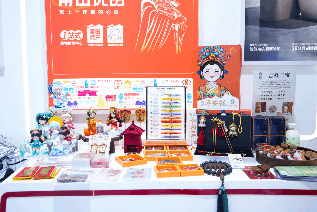 “莆田鞋”和“莆田优品”作为福建区域公共品牌的代表,此次联袂亮相亦吸引广泛关注。前者采用“1+N”联合创牌模式,汇聚区域内优质鞋企的自主品牌资源,强大的品牌矩阵展现了中国鞋都的硬实力;后者致力于推广莆田特色产品与文化元素,将地方特色产业与妈祖文化、状元文化等寓意融合,展品包含非遗线香、文创礼盒、工艺精品、特色美食等莆田地方精粹。
