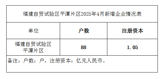 福建自贸试验区平潭片区2025年4月新增企业情况表