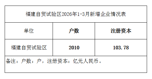 福建自贸试验区2026年1-3月新增企业情况表