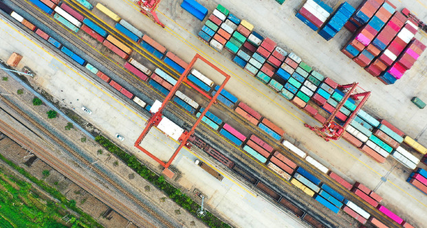 日出东方,霞光万丈。坐落于黄海之滨的中哈(连云港)物流合作基地内一派繁忙景象,满载出口货物的中欧班列鸣笛启程,向欧洲及中亚多地飞驰而去。