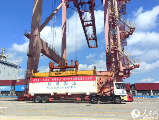 人民网厦门6月28日电(余乃鎏 周莹 林婧)27日,在厦门自贸片区海天码头,随着一个装有跨境电商产品的货柜被吊装上船,重点打造的厦门—东南亚“丝路海运”跨境电商快速通道正式启动,为厦门及周边跨境电商企业“出海”东南亚打造出高效率、低成本的物流新通道。