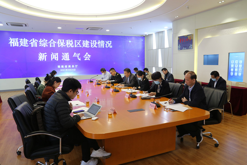 3月24日上午,省商务厅在福州举行福建省综合保税区建设情况新闻通气会。刘德培副厅长向媒体通报了我省综合保税区整合优化和统筹发展工作情况。福州海关、厦门海关,福州综合保税区和厦门象屿综合保税区管委会相关负责人参加了会议,并就有关工作进行了发言。