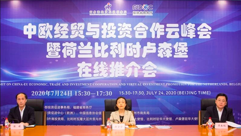 7月24日下午,由商务部投促局、福建省商务厅联合主办的“中欧经贸与投资合作云峰会暨荷兰比利时卢森堡在线推介会”在中国北京、福州、上海、海口以及荷兰、比利时、卢森堡四国七地通过“云平台”方式举办,旨在推动后疫情时代中欧经贸与投资合作迈向更高水平。福建省政府副省长郭宁宁、工业和信息化部原副部长杨学山、商务部投促局局长刘殿勋、荷兰经济部外商投资局局长倪景润、比利时瓦隆大区外贸与外国投资总署首席运营官康蓬年以及荷兰、比利时、卢森堡驻华使馆等中外嘉宾参加活动。云峰会吸引各方面广泛关注,中欧工商企业界代表逾3500人在线同步参与。
