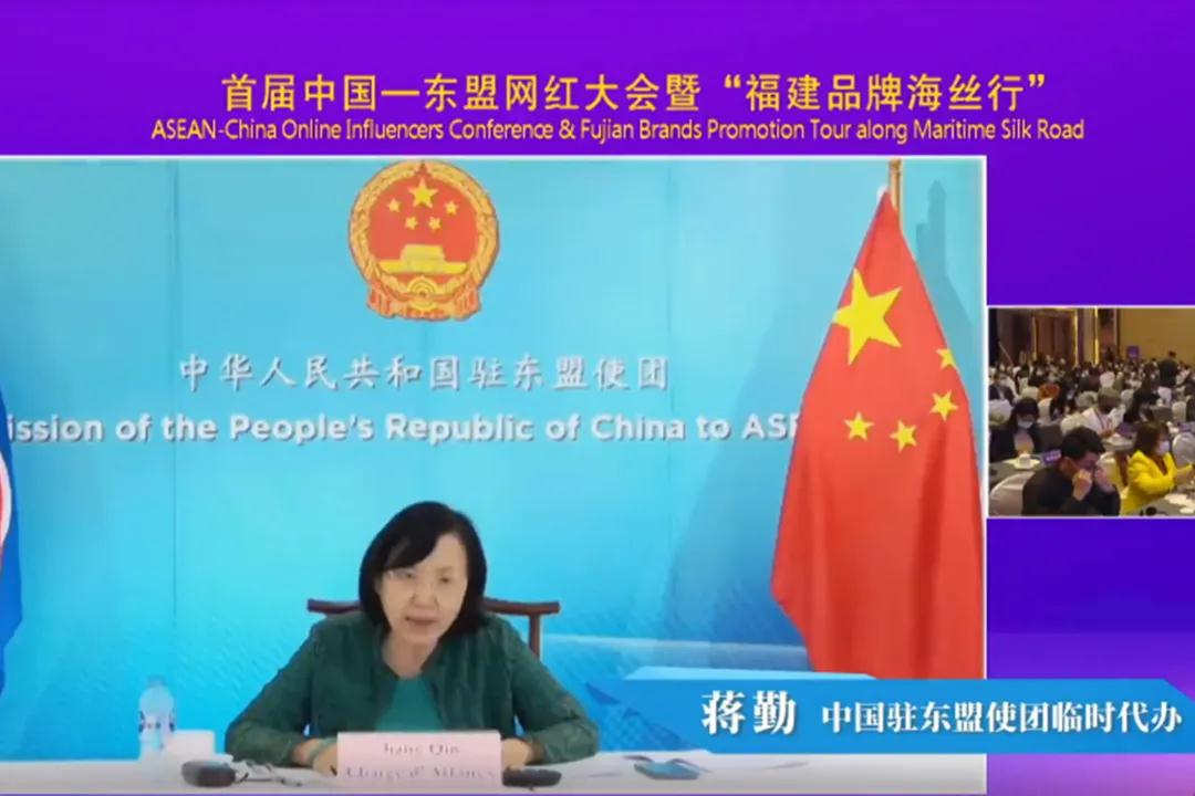 中国驻东盟使团临时代办蒋勤在线上发表致辞。她表示,时势造英雄,网络红人正在数字时代的舞台上熠熠生辉,发挥着独特的重要作用。首届中国-东盟网红大会的举办可谓恰逢其时,为双方增进交流和沟通提供了一个新的重要平台。