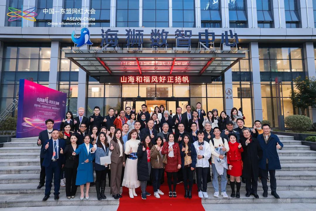 ▲东盟国家使节以及网红使者在海狮数智中心合影
