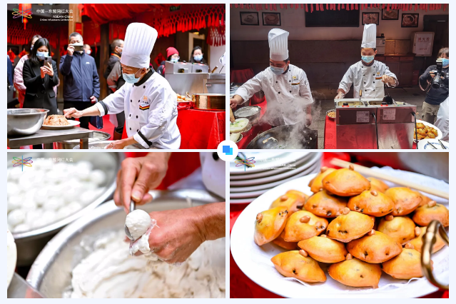 嘉宾们一踏进文儒闽菜馆,扑面而来的热闹场面与古香古色的环境相得益彰。只见厨师们正热火朝天地准备着油饼、鱼丸、甜糍粑等热腾腾的闽味小吃,即做即食,极大地满足了嘉宾们初来乍到的尝鲜欲望。