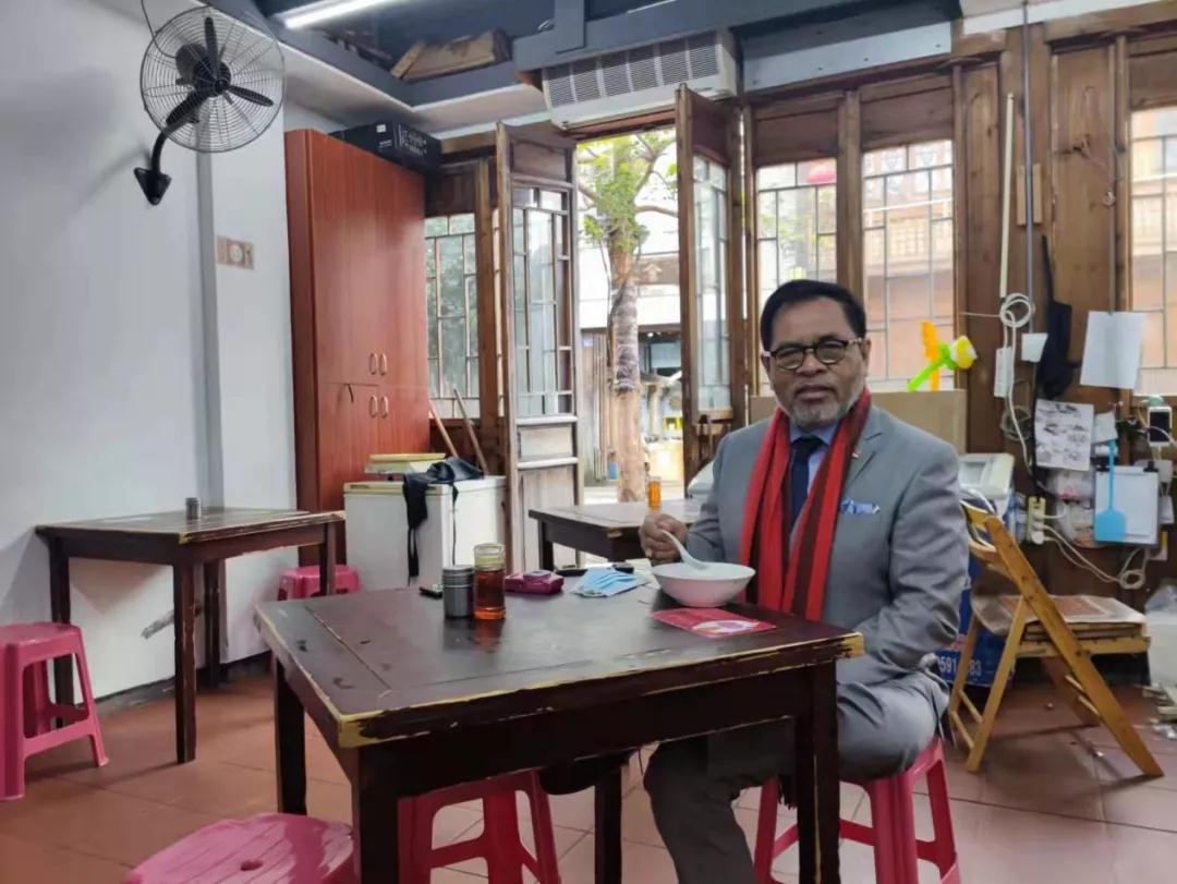 ▲印度尼西亚驻华大使周浩黎在三坊七巷南后街品小吃