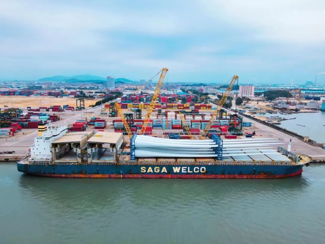 12月8日,福建首次出口的风电叶片在福州江阴港区装船销往欧洲市场。该风电叶片由福建艾尔姆公司生产,是目前全球量产的最长的风电叶片。艾尔姆风电叶片制造项目位于福清江阴,由美国通用集团(GE)于2018年11月投资设立,员工500多人,主要生产100米以上海上风力发电叶片,第一条生产线于2021年7月投产,第二条生产线于2022年4月投产。