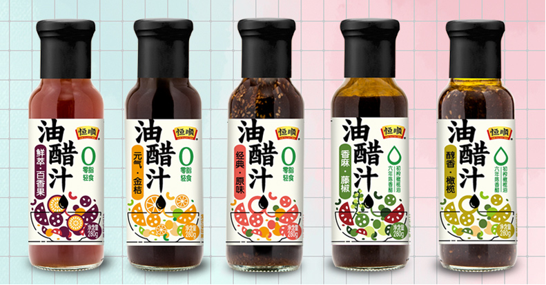 推出“健康新味道”。为吸引年轻消费者,恒顺开发了零糖、零脂健康系列油醋汁产品,丰富的口味和健康的特色,满足了消费者双重需求,独特的产品特色和时尚的包装设计吸引了大批年轻消费人群。