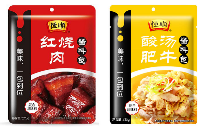 为老百姓带来复合味道。中国地大物博,因地域而形成各具特色、风味各异的菜系,为了让老百姓足不出户就享受到各式菜肴,同时大大降低对烹饪者烹调技术的要求,恒顺在标准化、天然化、功能化、健康化理念指导下,创新研发系列代表性复合调味料,推出红烧肉、酸汤肥牛、回锅肉、宫保鸡丁、鱼香肉丝、麻婆豆腐等多个口味料包,“一菜一包”成为老百姓厨房的新产品;推出海米干饭酱、三珍干饭酱、鱼籽干饭酱,为老百姓的佳肴增添新味道;推出牛油火锅底料、新疆番茄火锅底料、三珍菌汤火锅底料,让老百姓的火锅有了新选择。