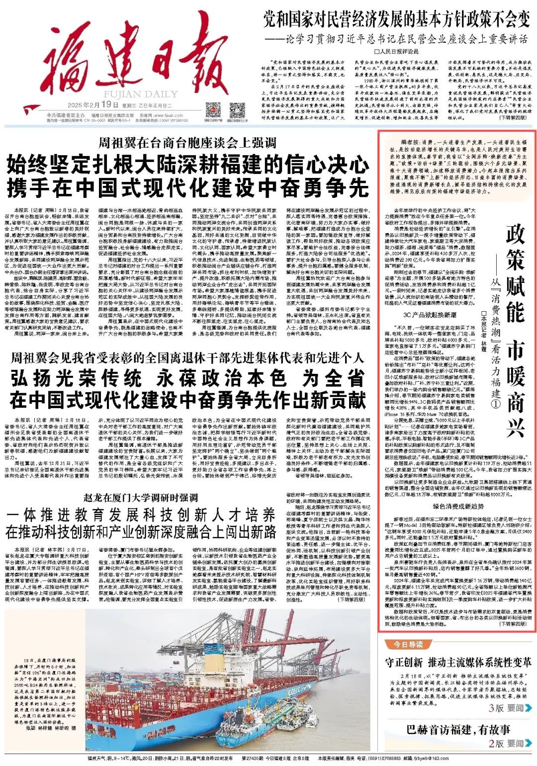 2月19日,《福建日报》头版刊发《政策赋能 市暖商兴——从“消费热潮”看活力福建》