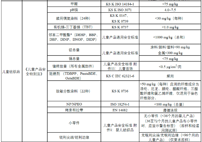 ⑤韩国《儿童用品通用安全标准制定和供应商符合性声明法附录15:儿童纺织品》
