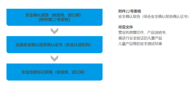 (3)儿童产品安全确认和供应商符合性确认标志。制造商或进口商经过指定检测检验机构安全检测检验,确认符合儿童产品安全标准后,方可加贴安全确认标志。
