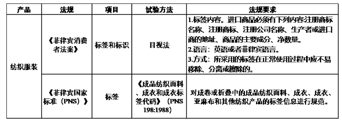 出口菲律宾纺织服装企业须重点关注《菲律宾消费者法案(公共法案第7394 号)》成分等标签要求。