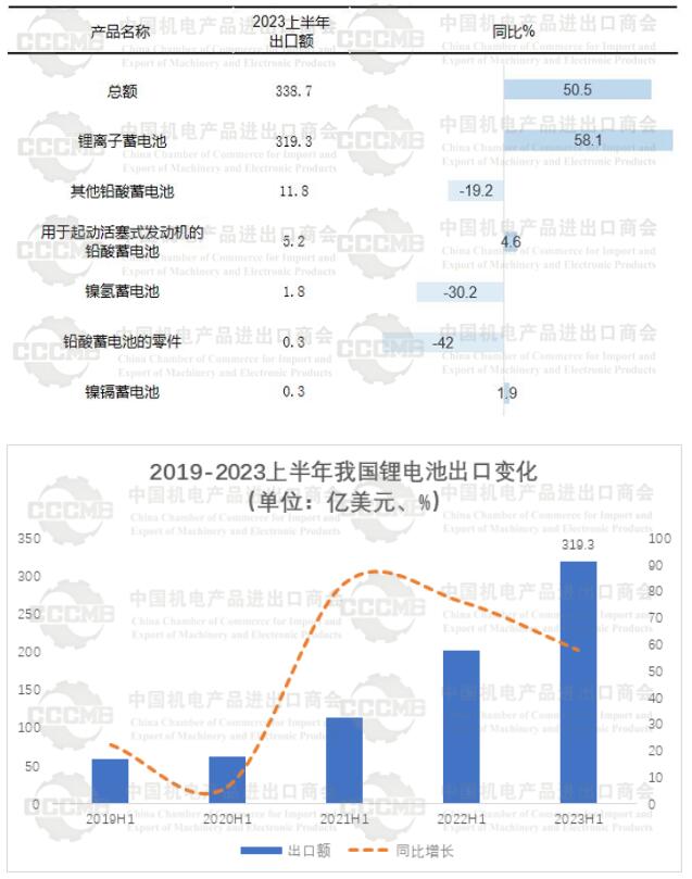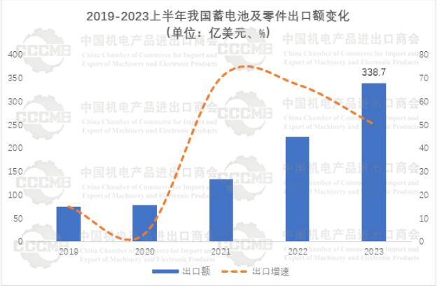 (一)2023年上半年我国蓄电池及零件出口同比增长50.5%至338.7亿美元